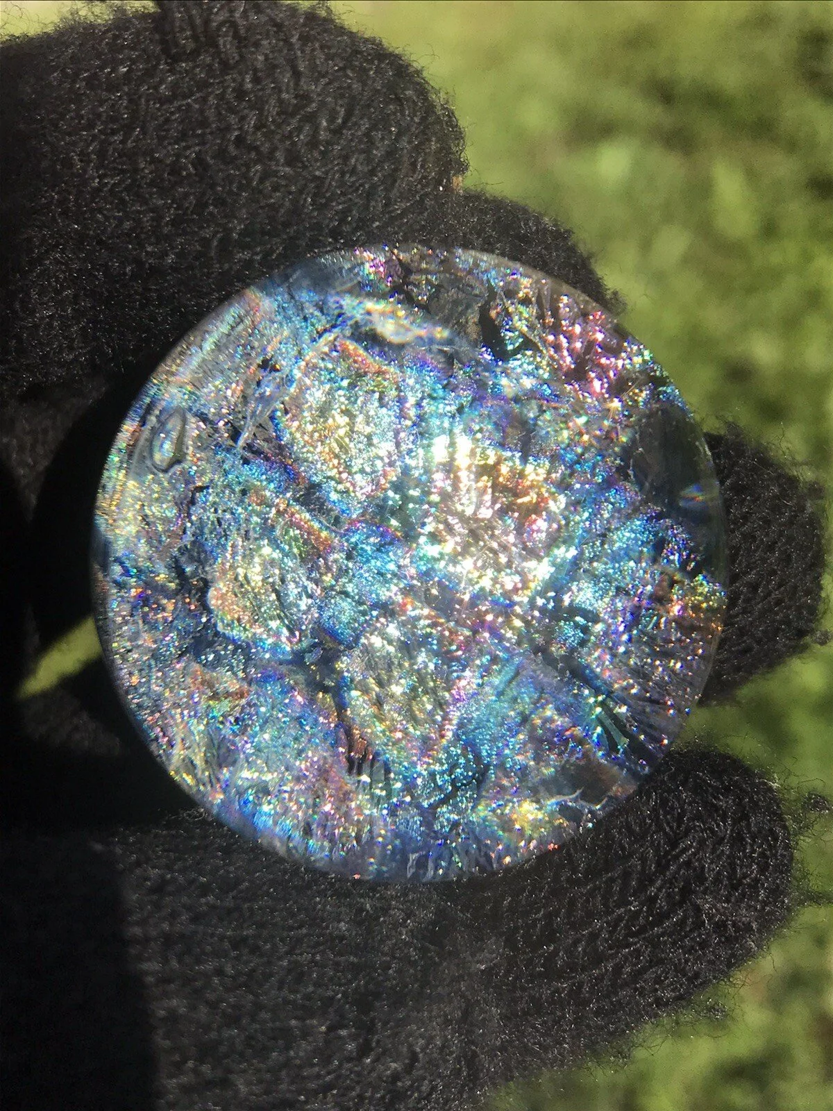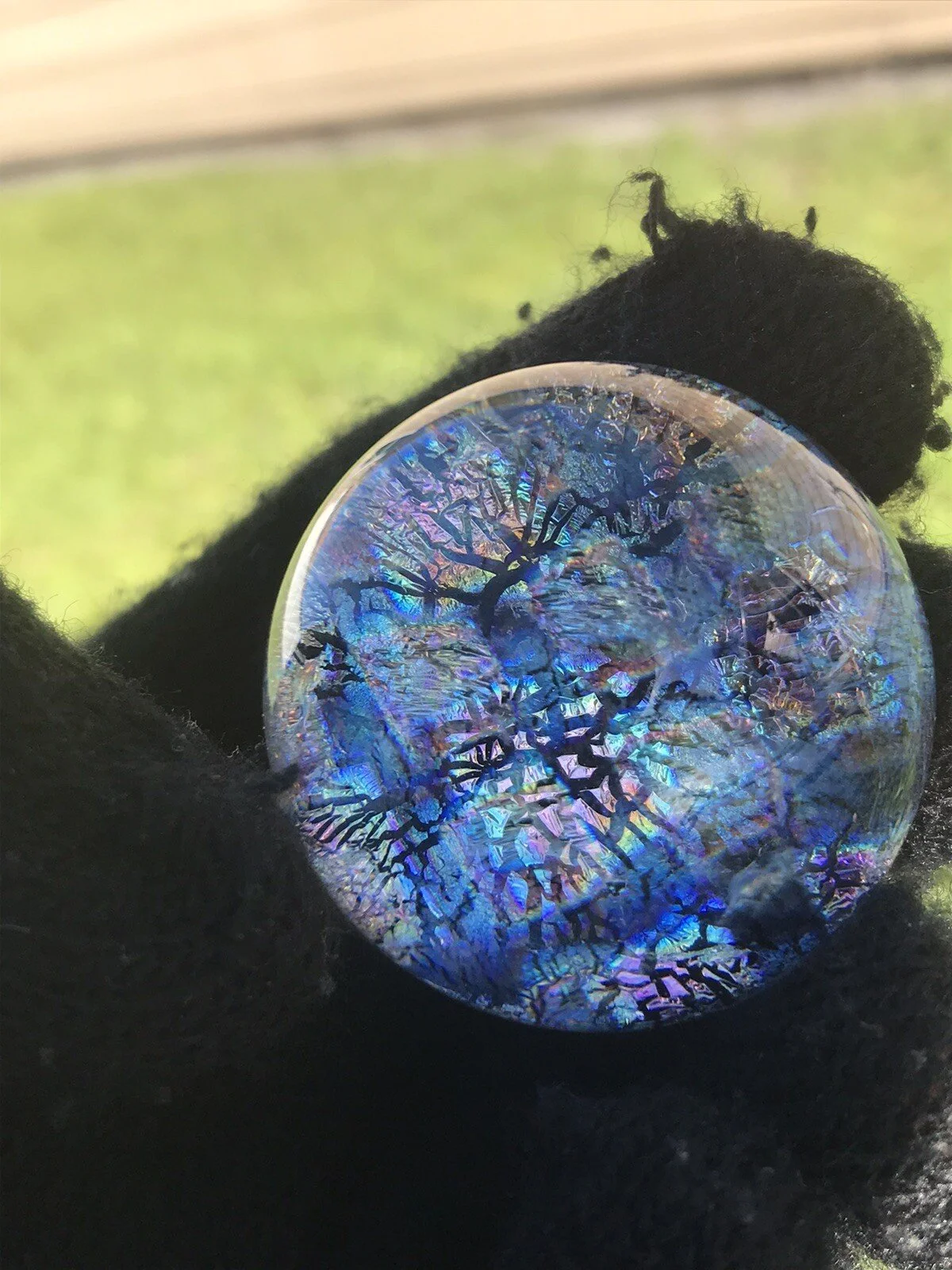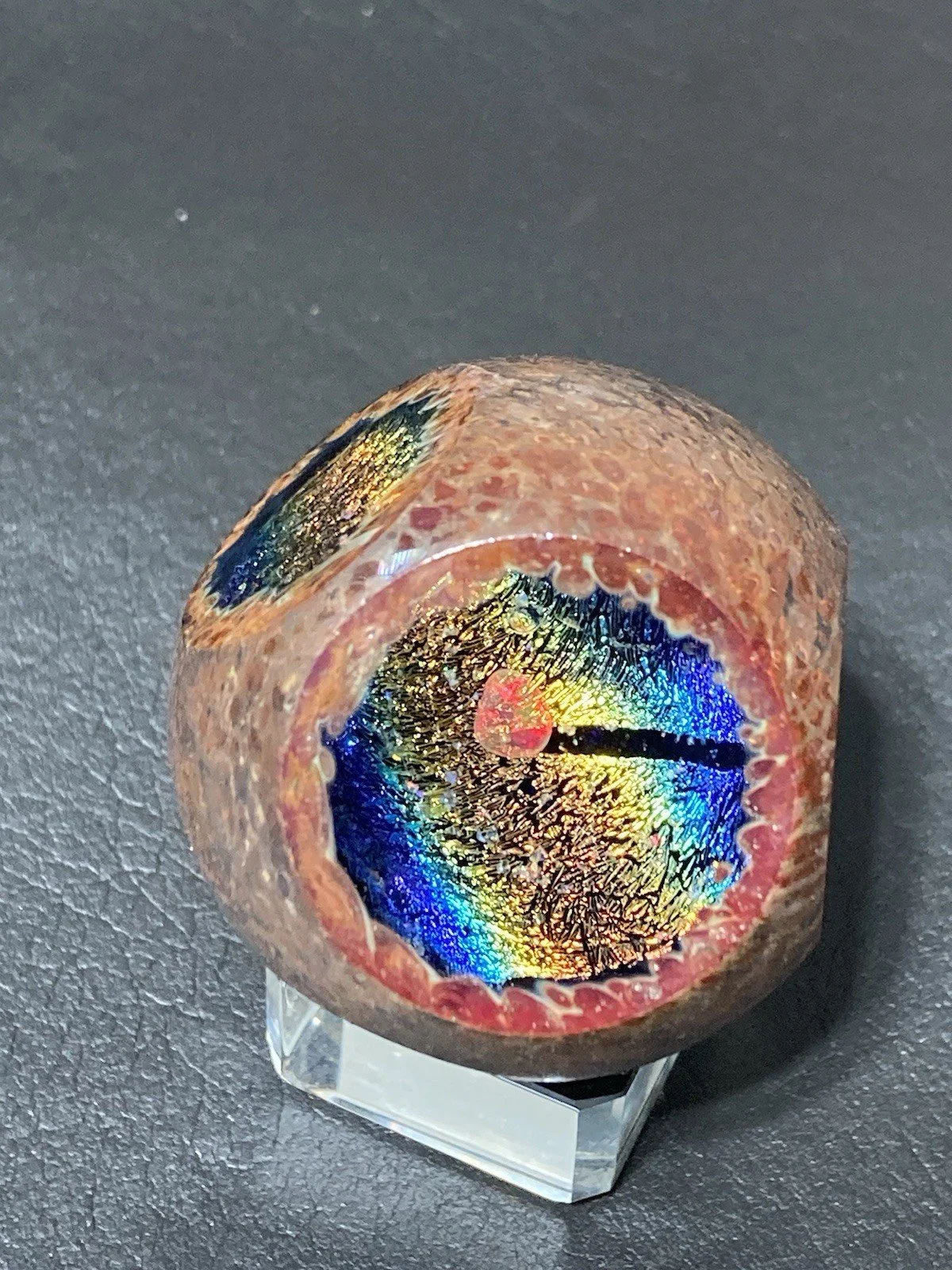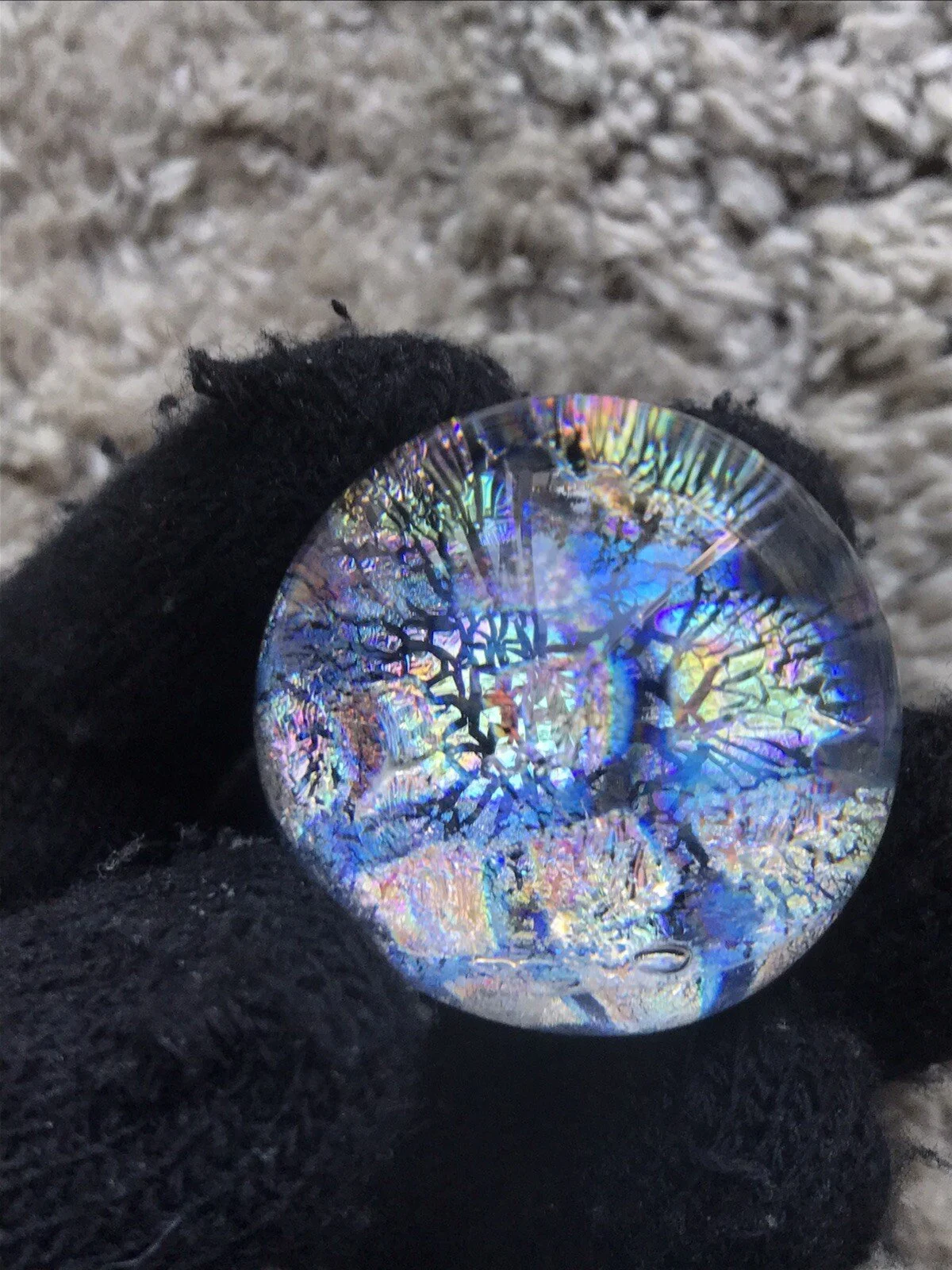 Glass Boro Marble MEGA Rainbow Dichro Theme 39mm Sculpture Art Multi Color