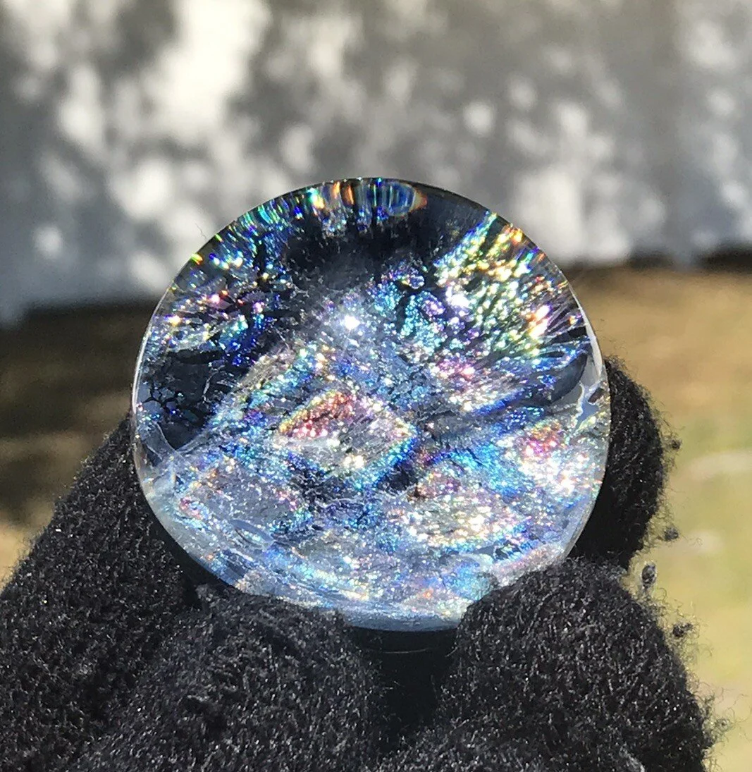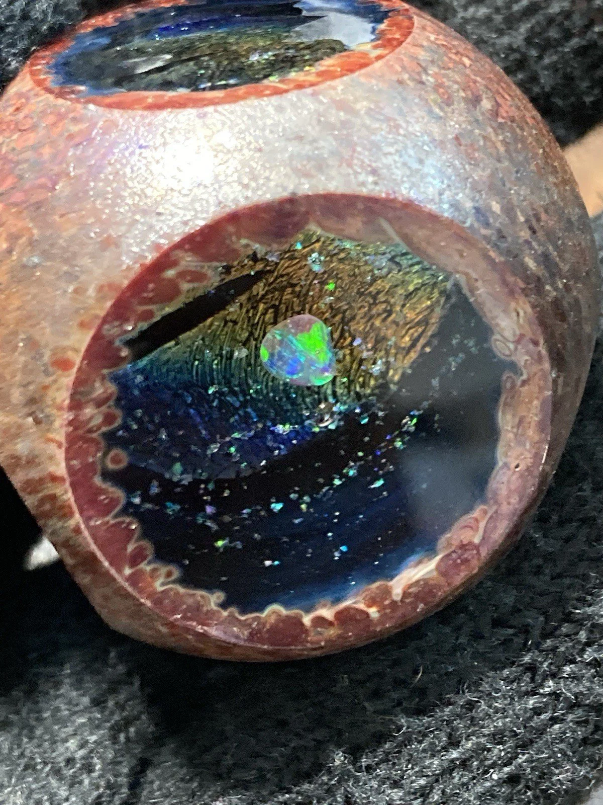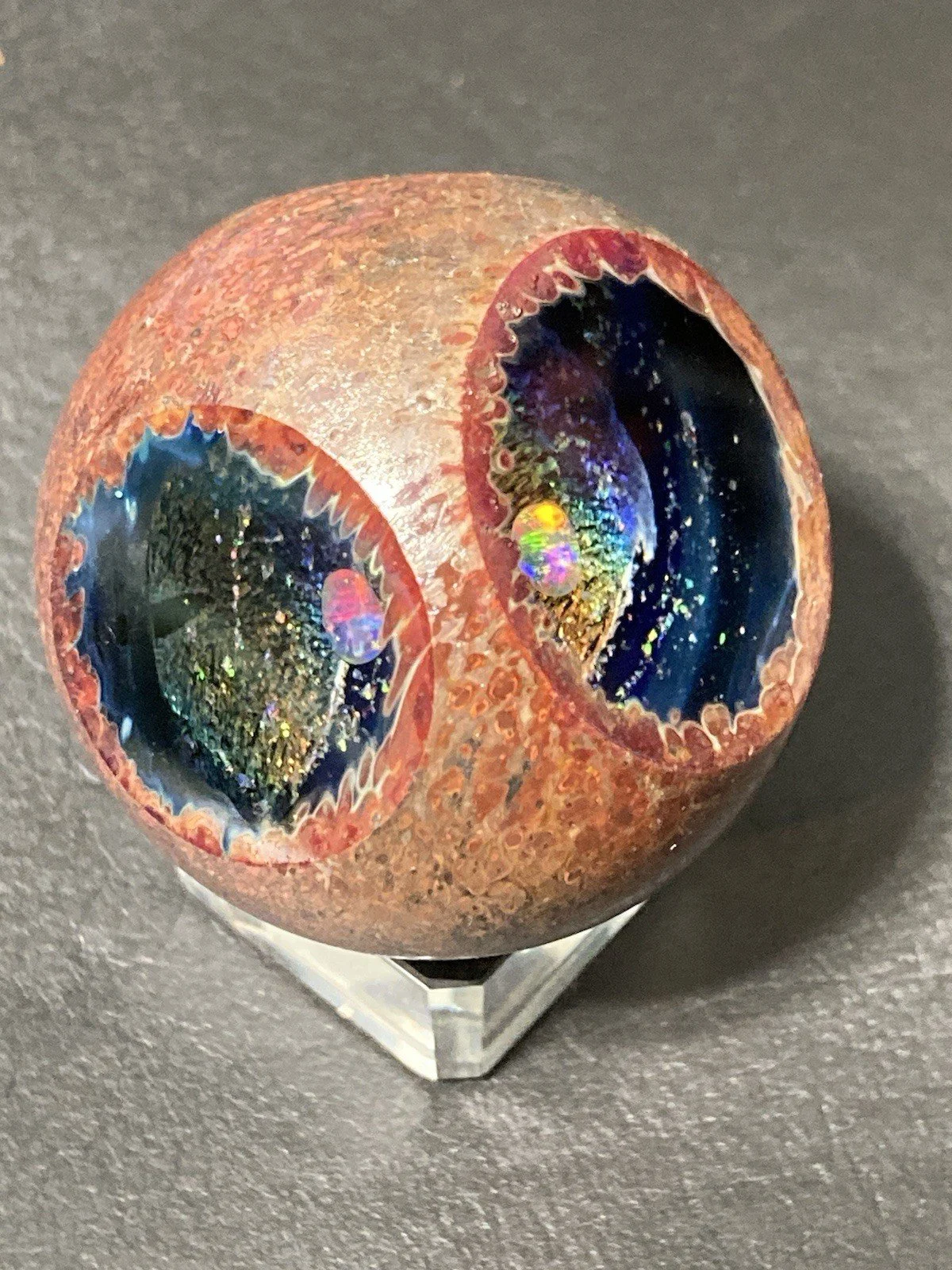 Glass Boro Marble MEGA Rainbow Dichro Theme 39mm Sculpture Art Multi Color