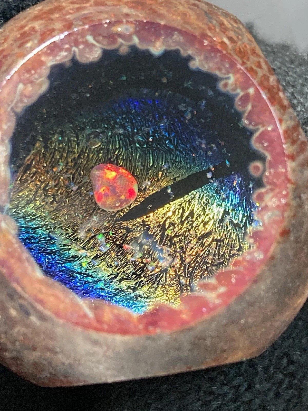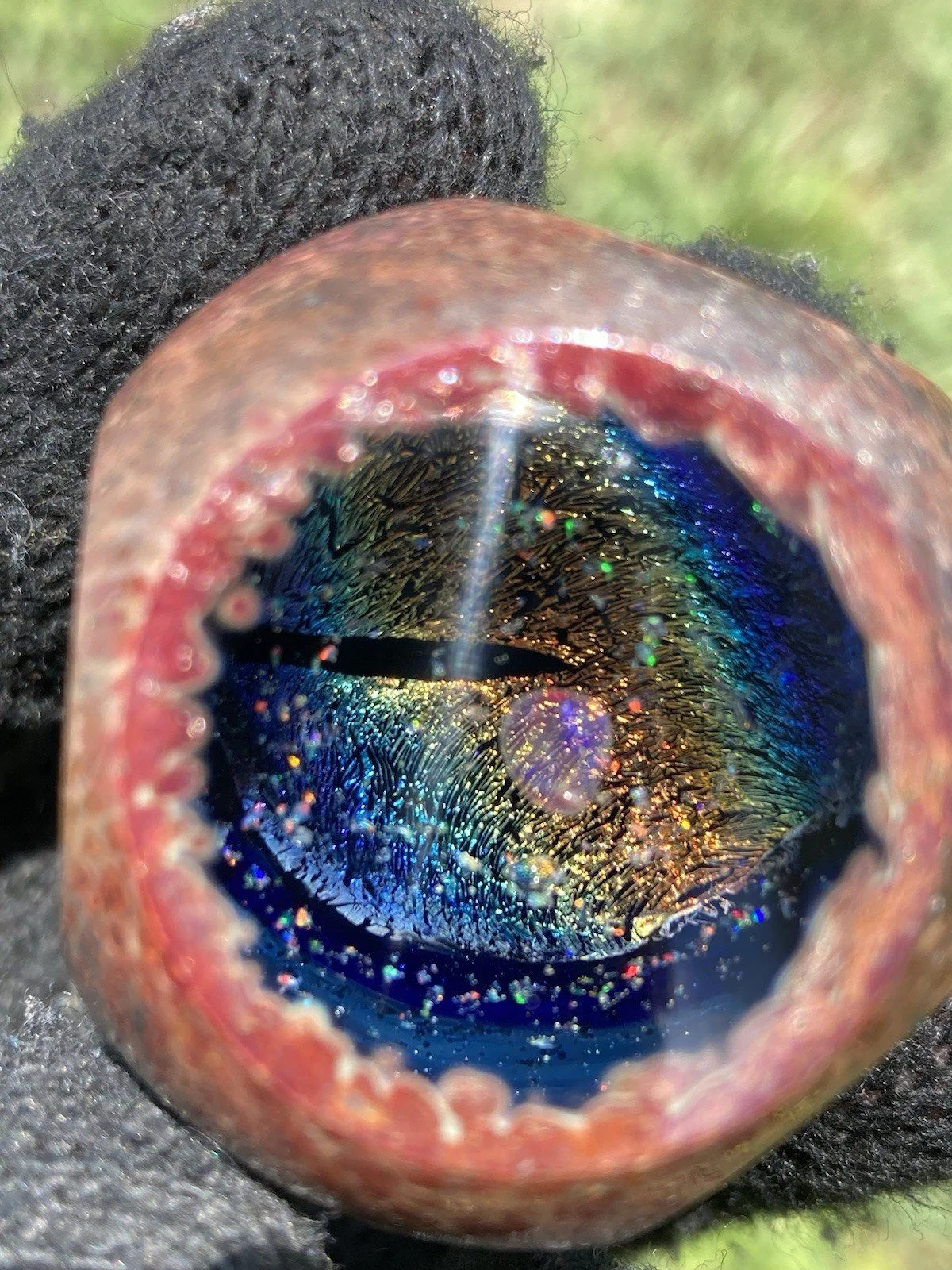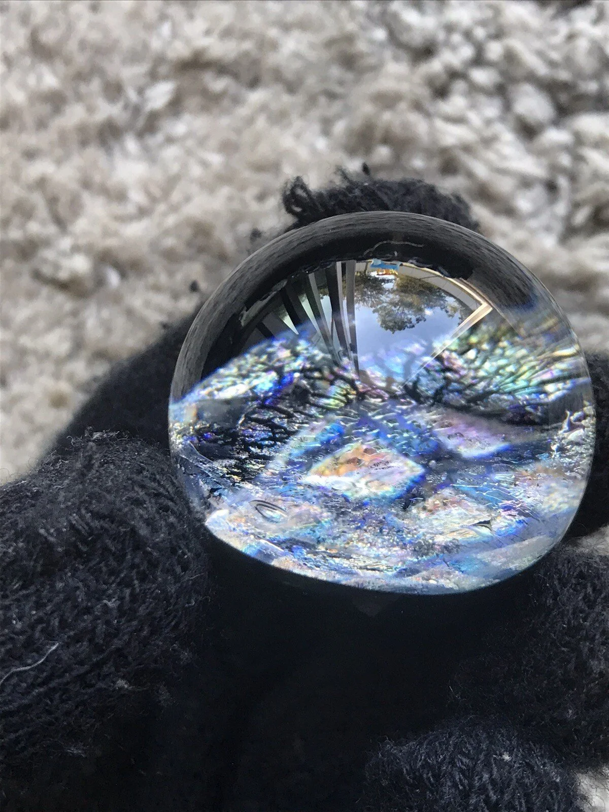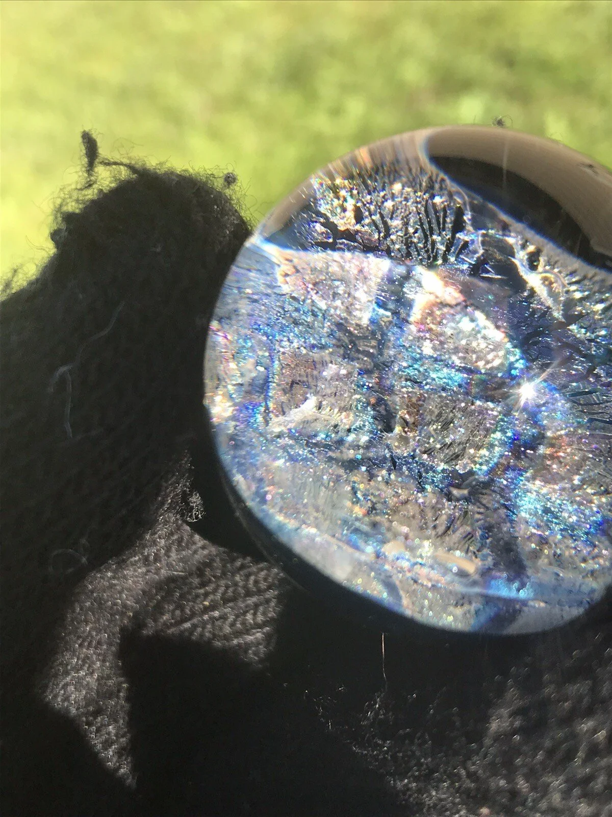 Glass Boro Marble MEGA Rainbow Dichro Theme 39mm Sculpture Art Multi Color