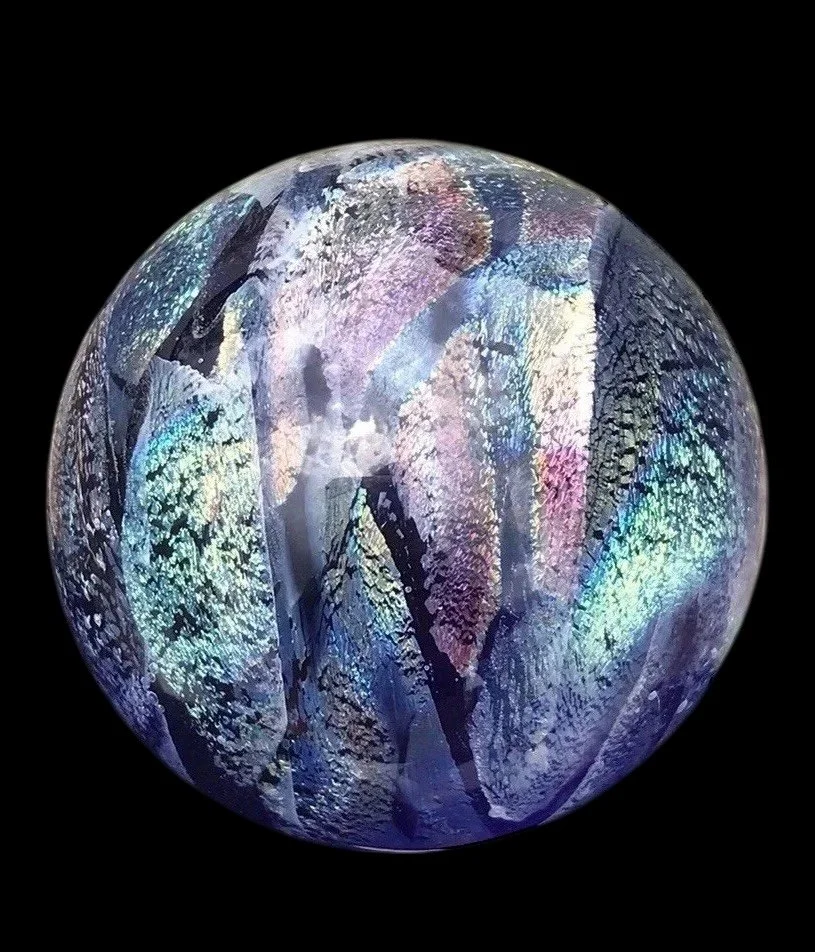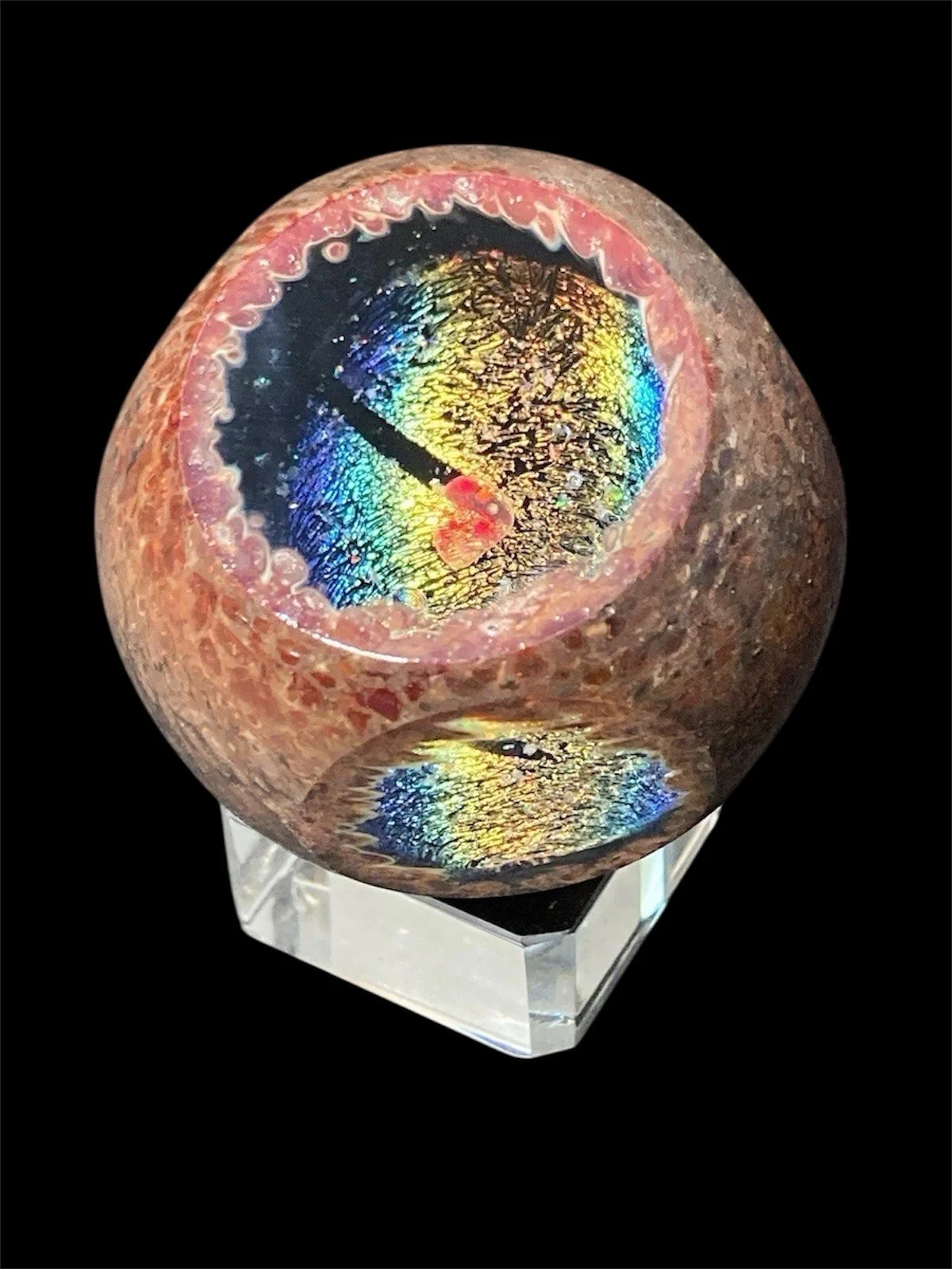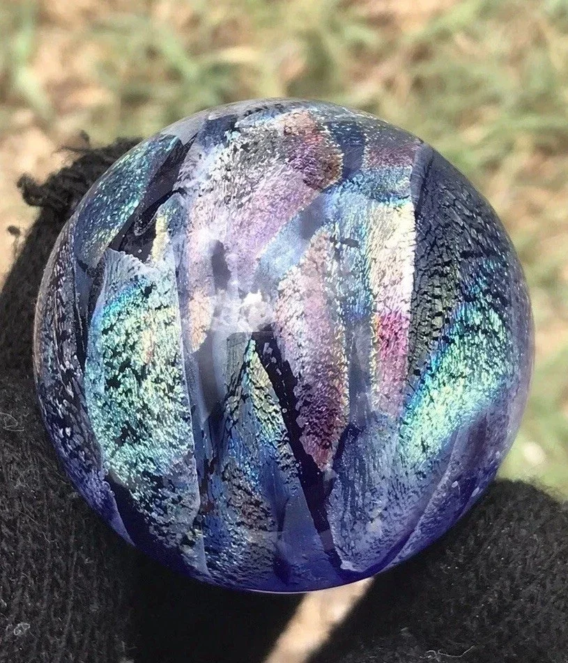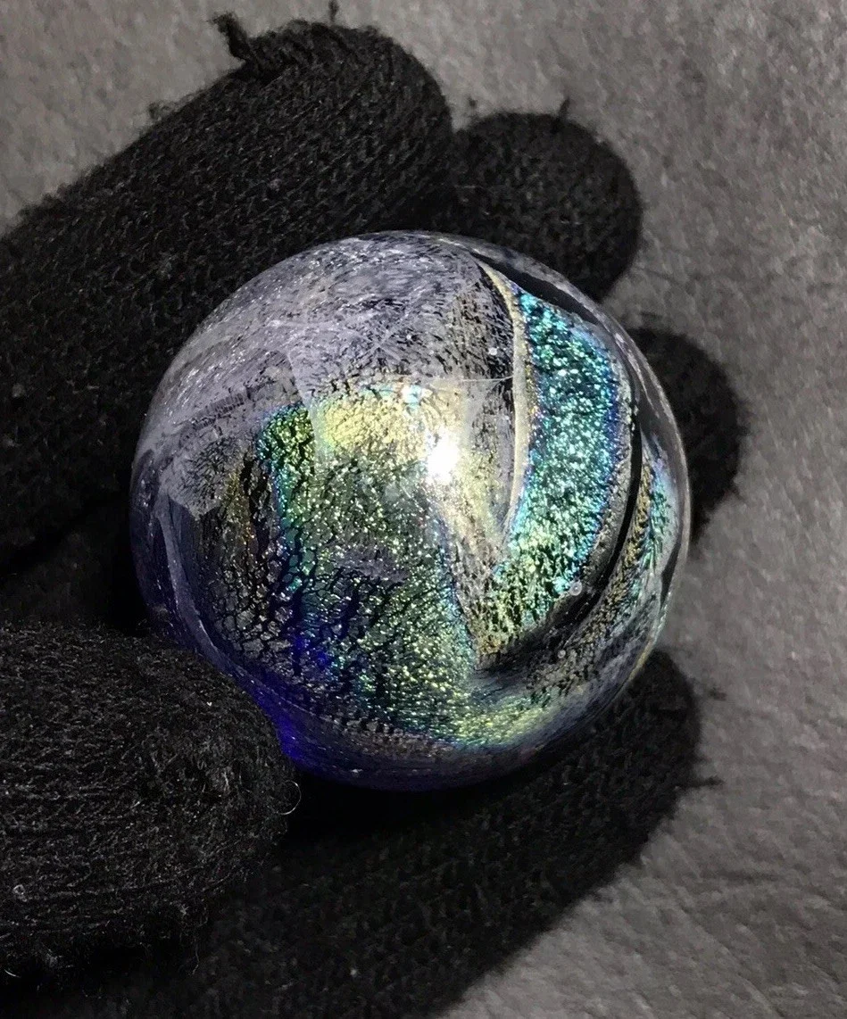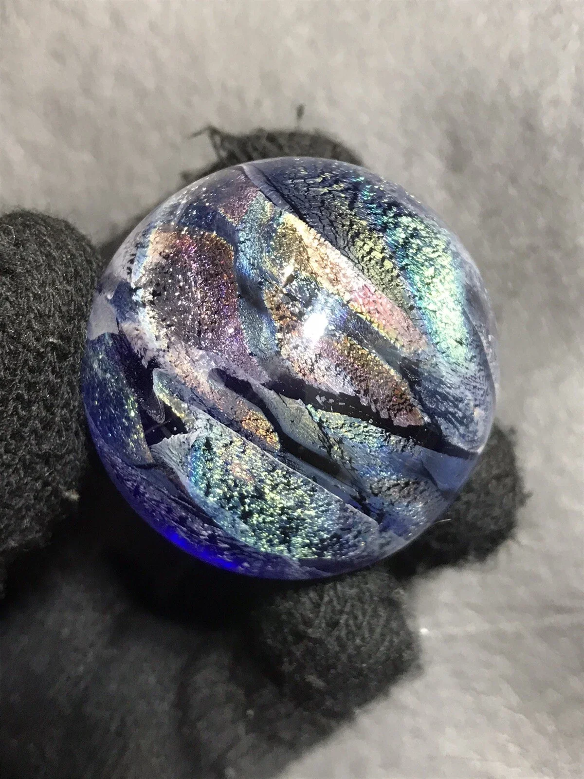 This is a beautiful multi color dichro multi layer twist marble with honeycomb dichro background. This marble features multiple layers of beautiful dichro color that create a beautiful optical illusion.