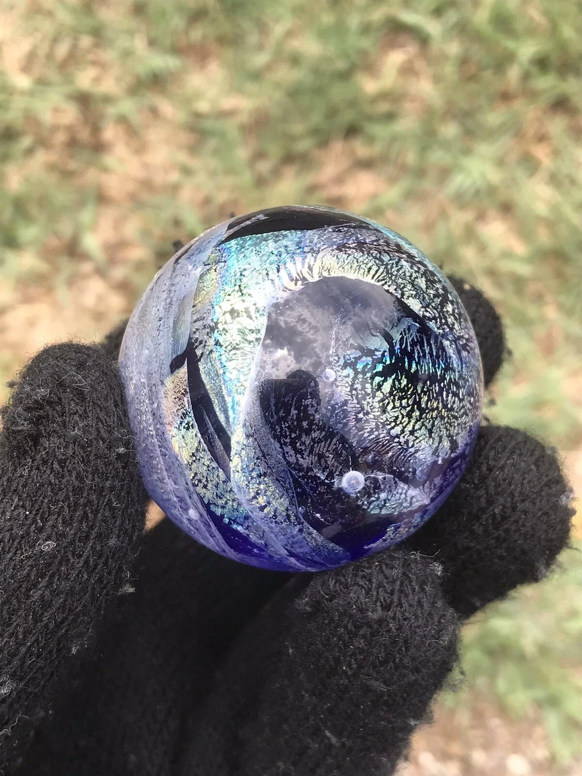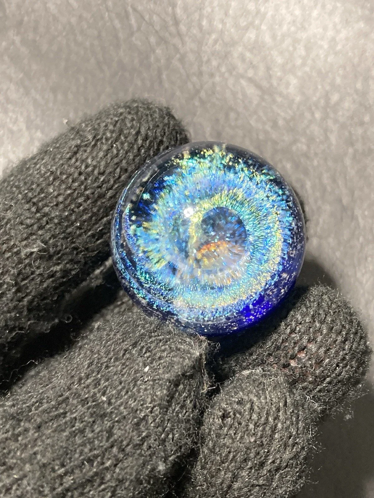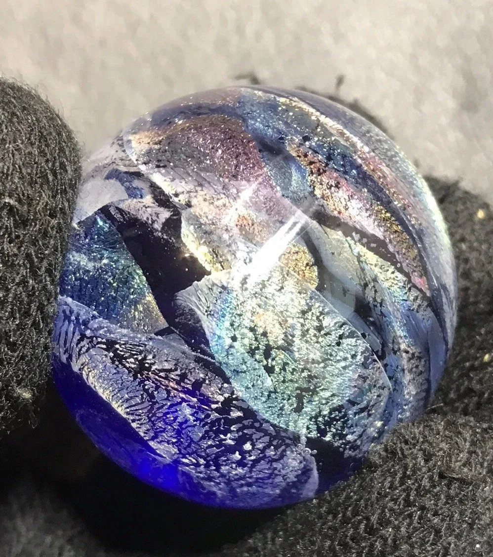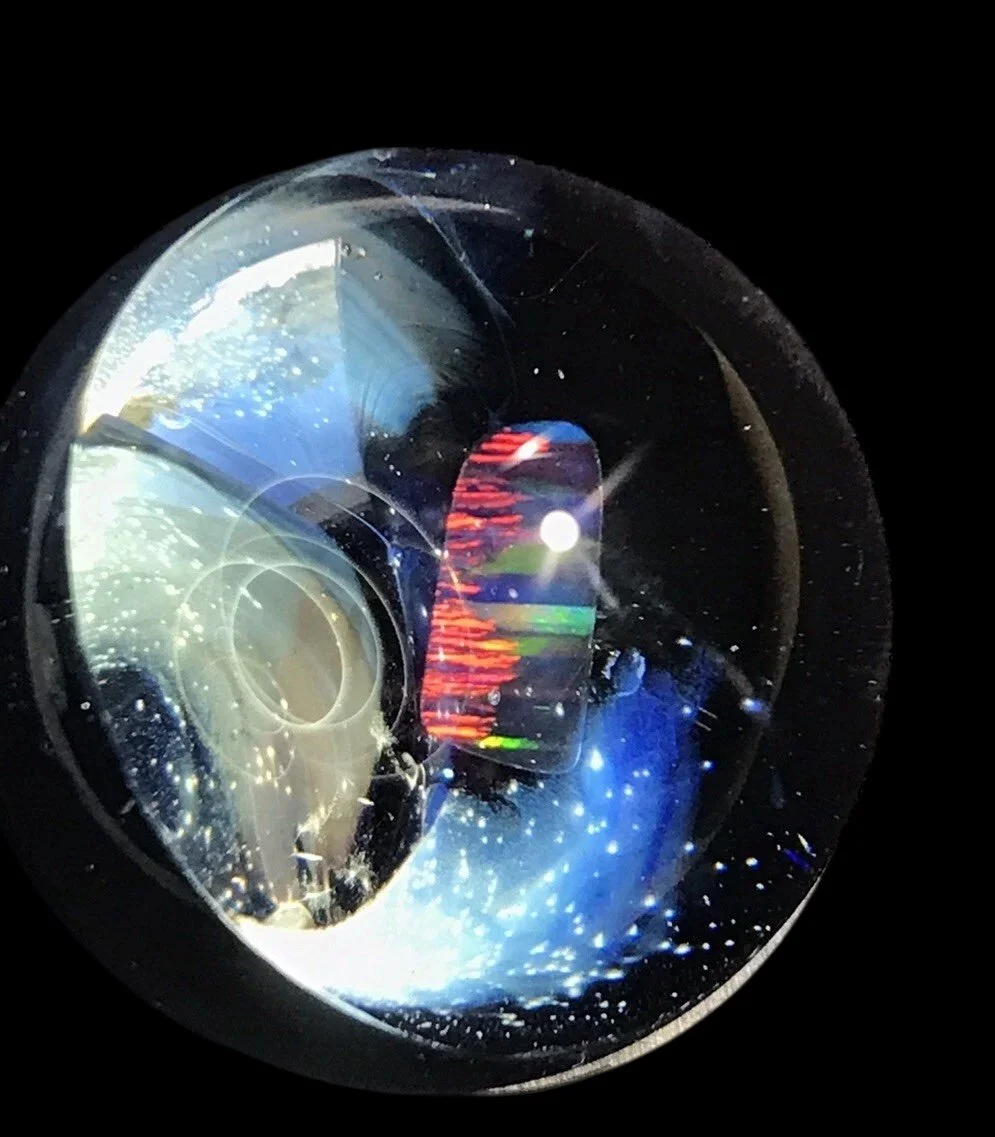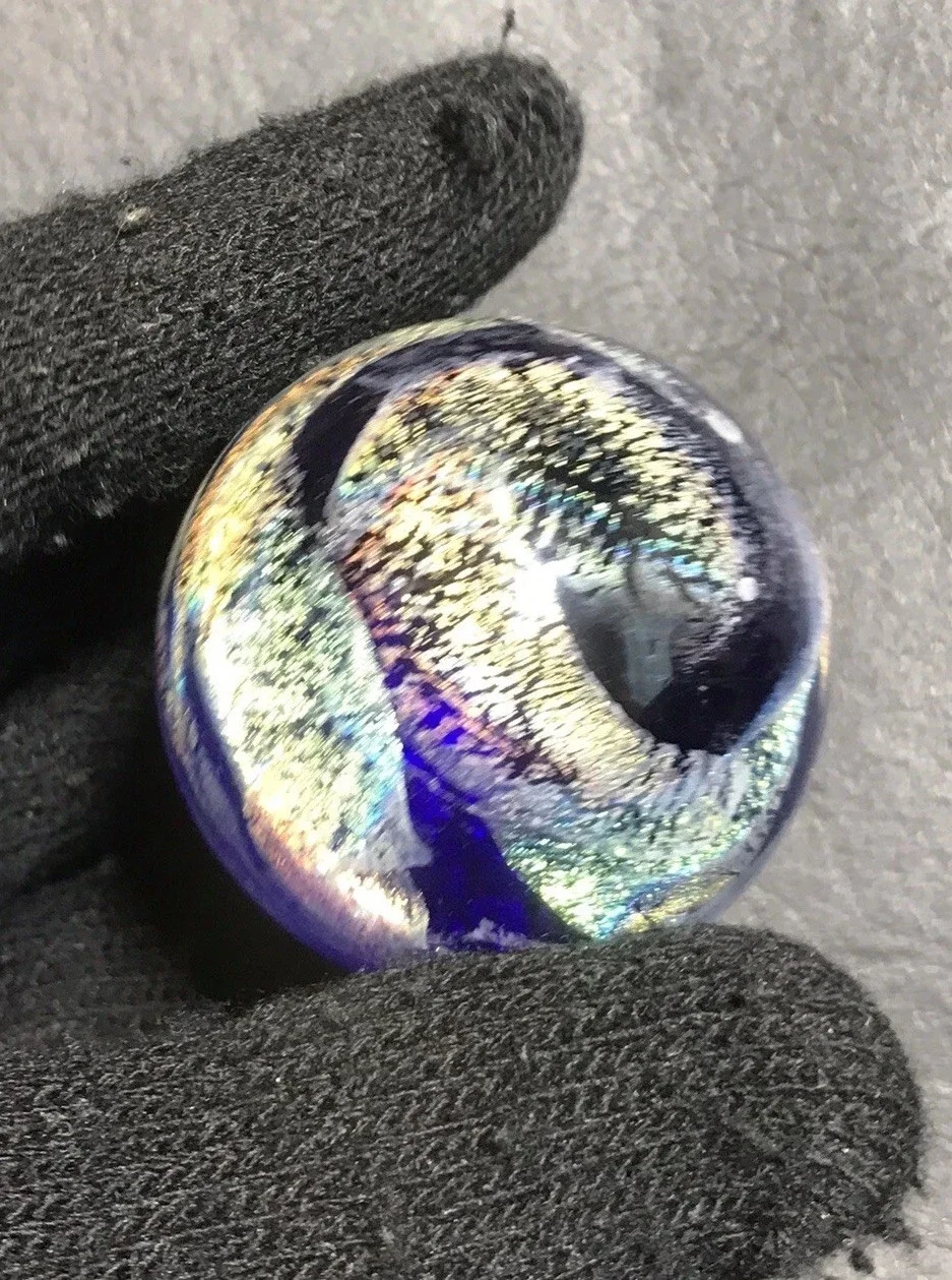 This is a beautiful multi color dichro multi layer twist marble with honeycomb dichro background. This marble features multiple layers of beautiful dichro color that create a beautiful optical illusion.
