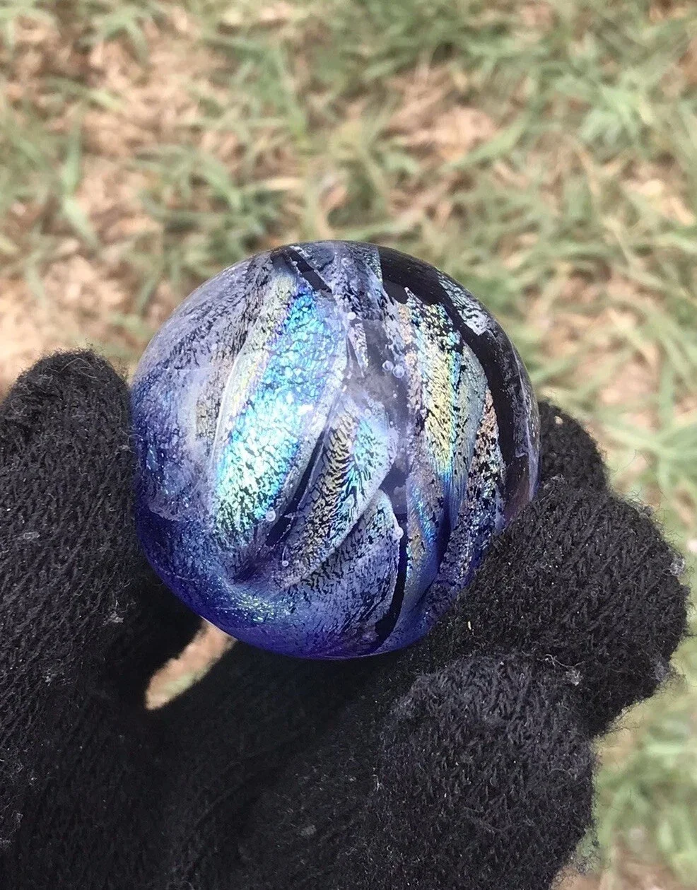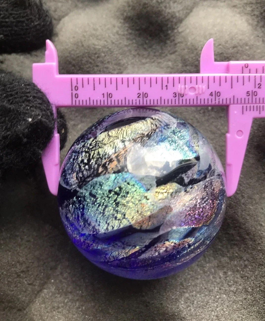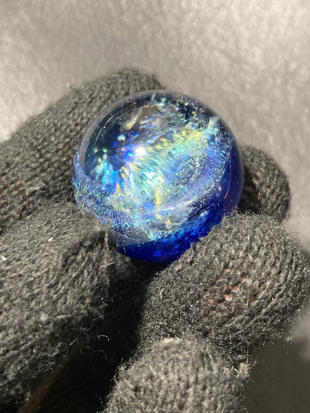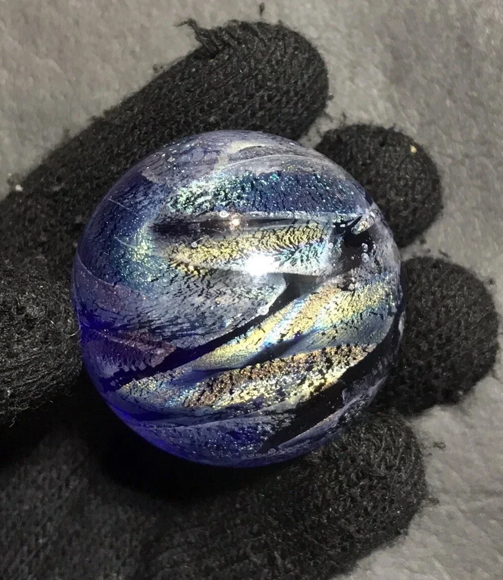 This is a beautiful multi color dichro multi layer twist marble with honeycomb dichro background. This marble features multiple layers of beautiful dichro color that create a beautiful optical illusion.