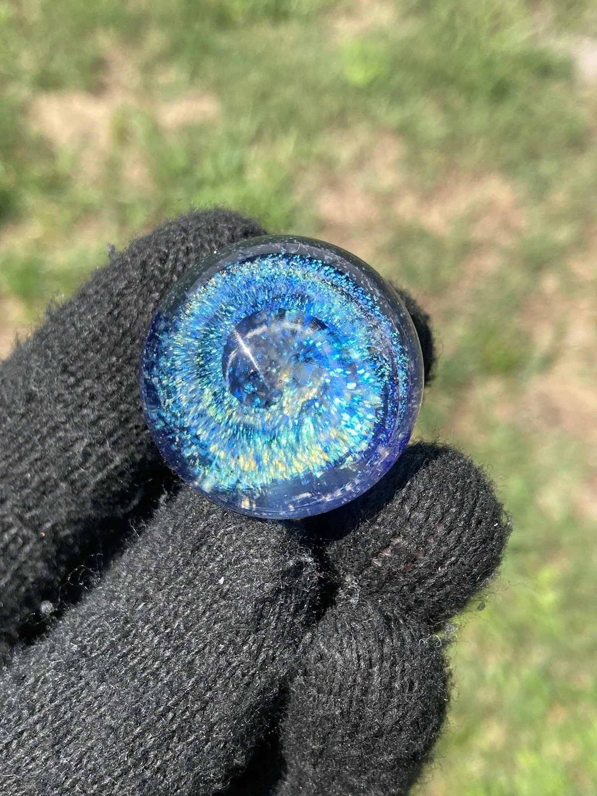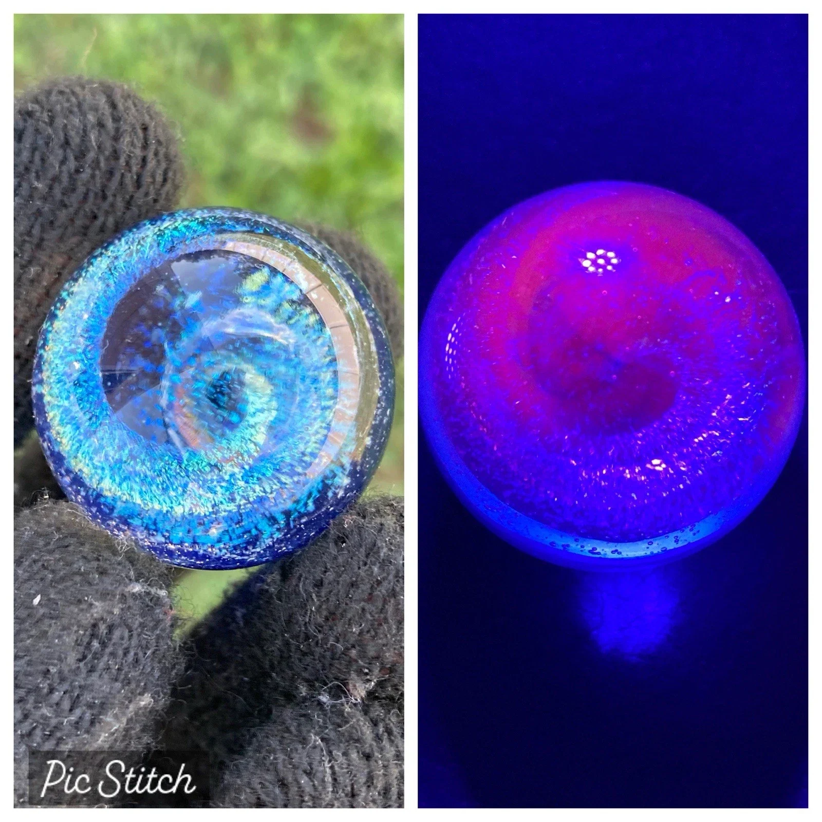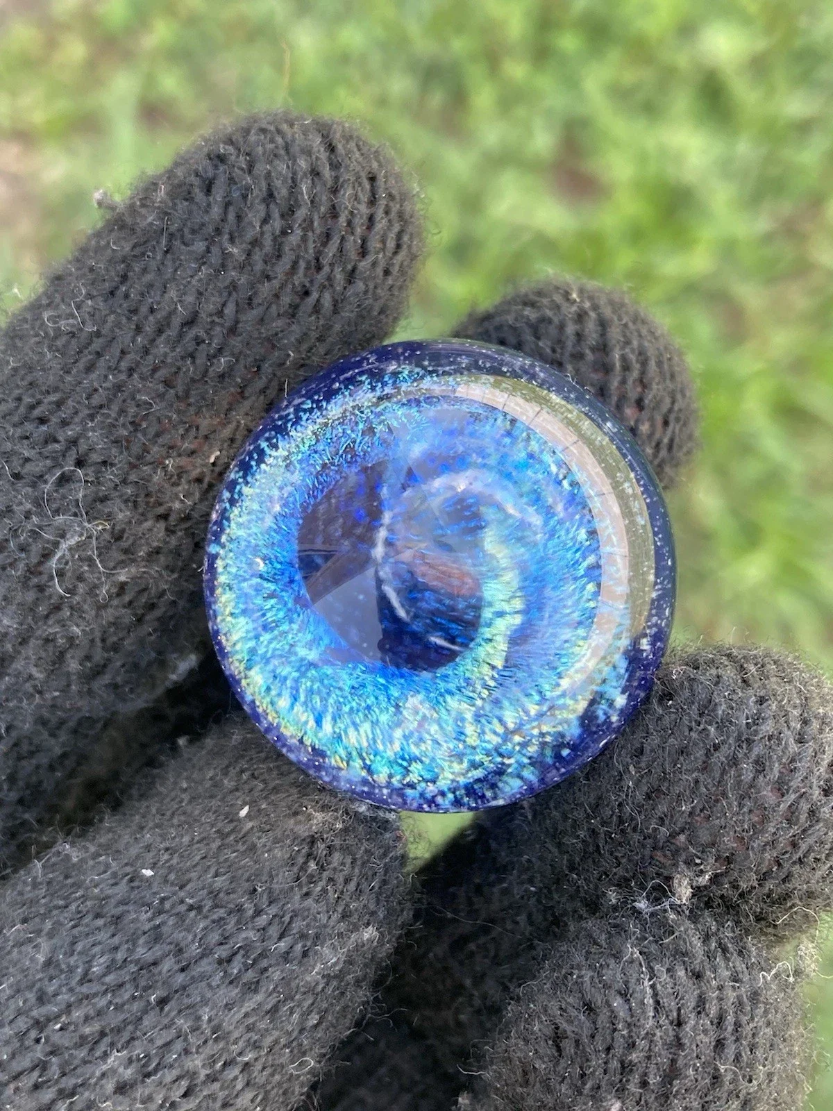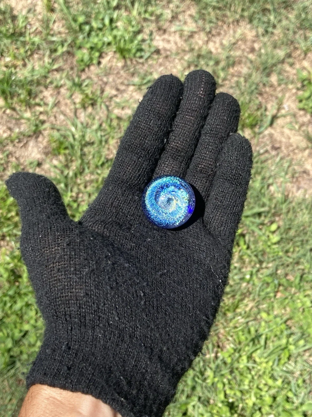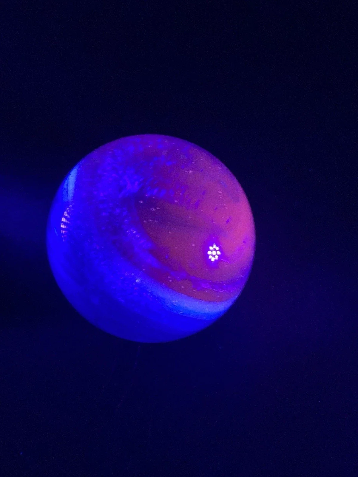 This is a beautiful multi color dichro multi layer twist marble with honeycomb dichro background. This marble features multiple layers of beautiful dichro color that create a beautiful optical illusion.