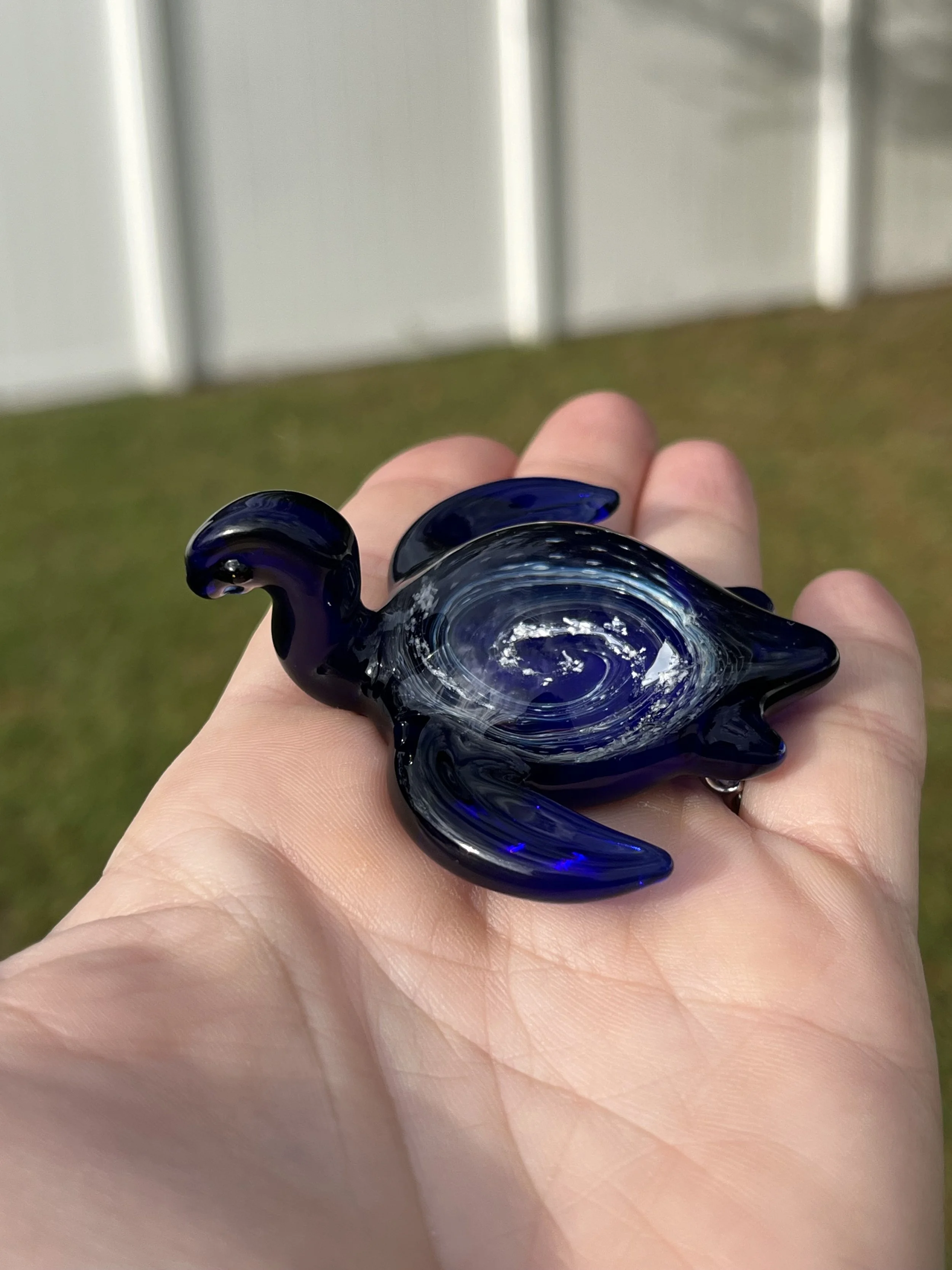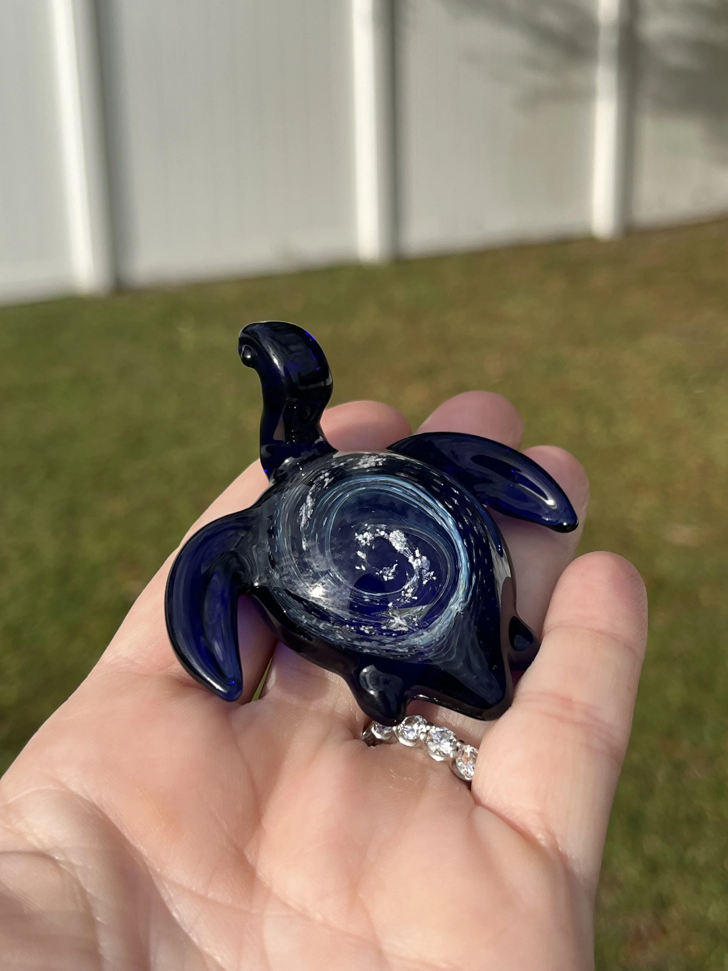 This breathtaking glass sea turtle is infused with 999 pure silver, 22k gold, and an encased opal, mirroring the celestial beauty of the heavens reflected upon the ocean’s surface. Each sculpture is individually handcrafted, holding within it the ashes of your loved one, creating a luminous tribute that symbolizes eternal love and peaceful passage.